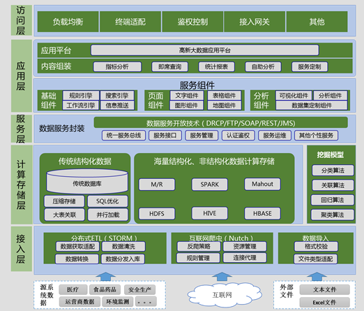 服务层主要对存储层数据进行服务封装,对上层和外部提供数据共享服务,通过数据封装屏蔽底层复杂的存储技术,实现数据与应用的分离